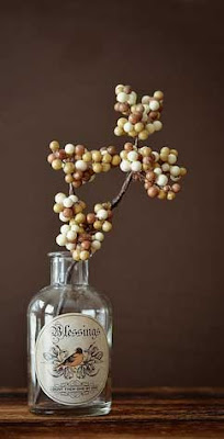 Botol bekas ini cocok diberi label model antik,setangkai buah beri liar